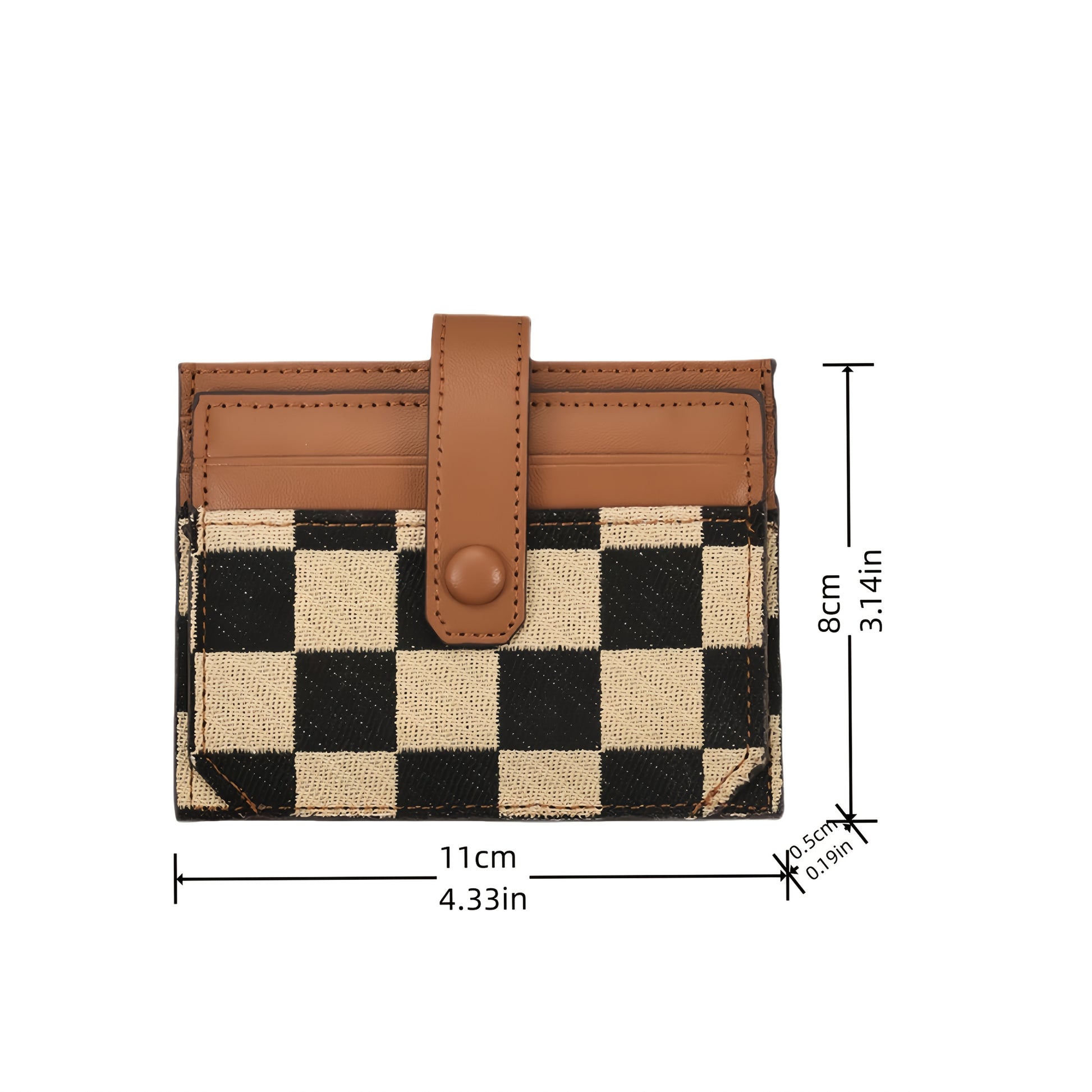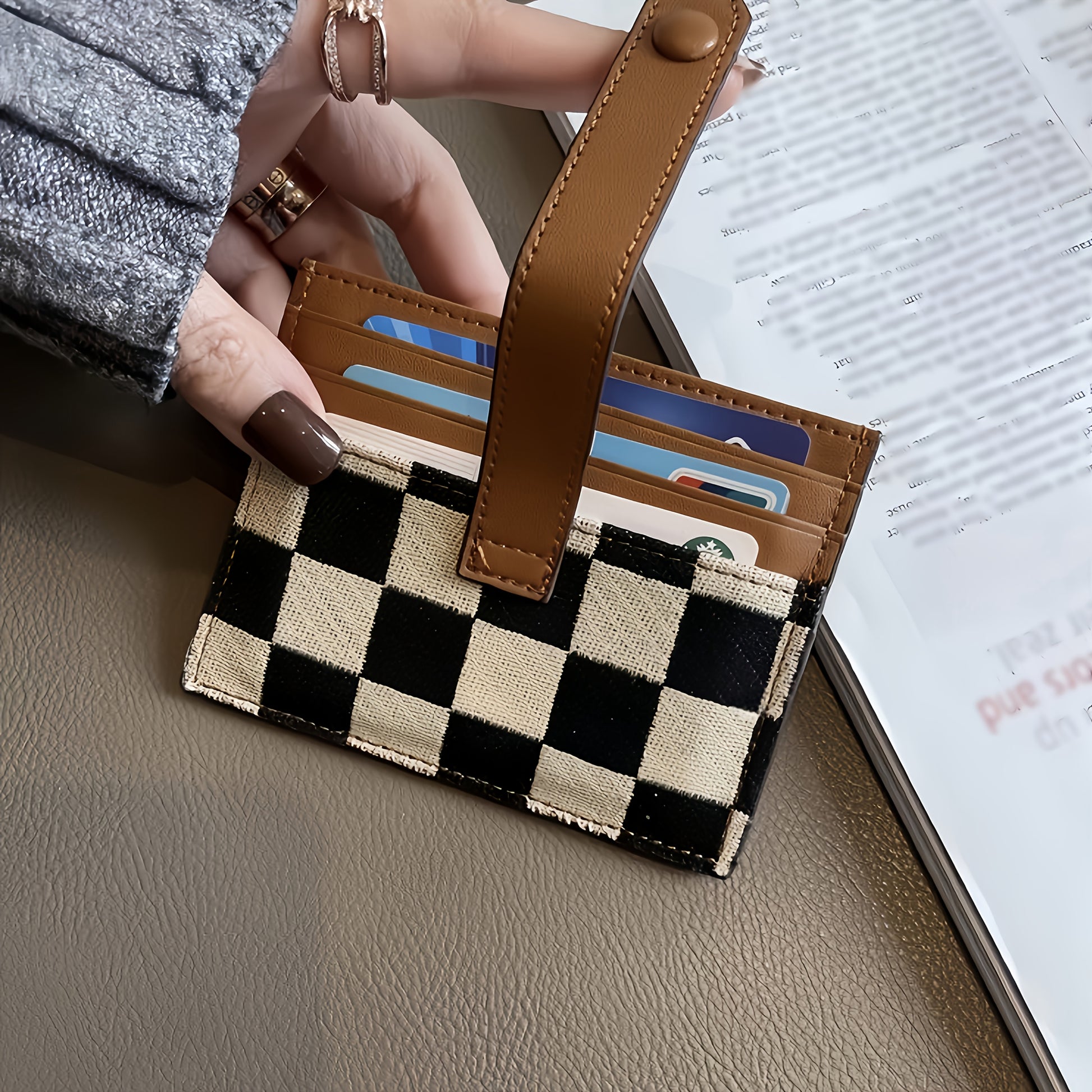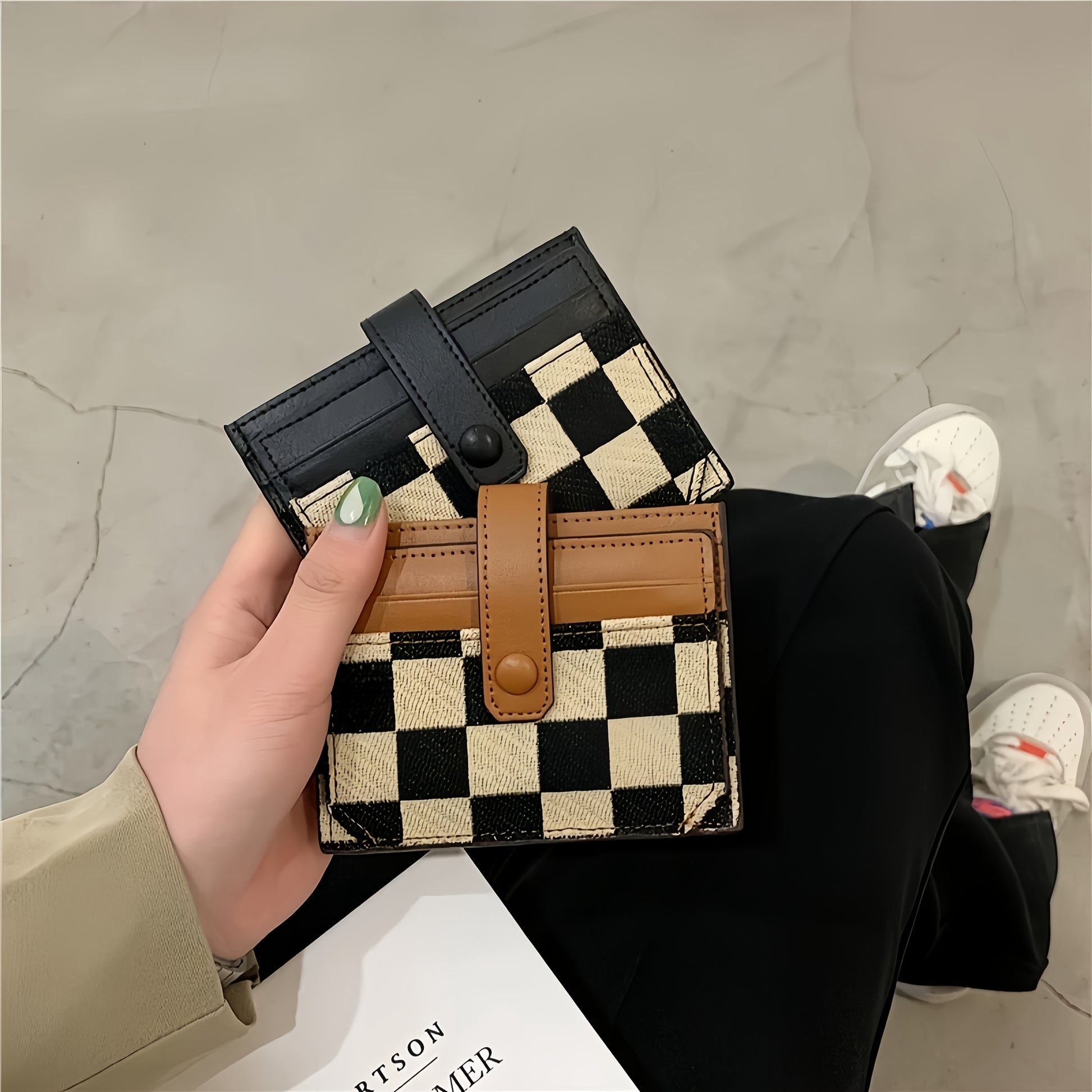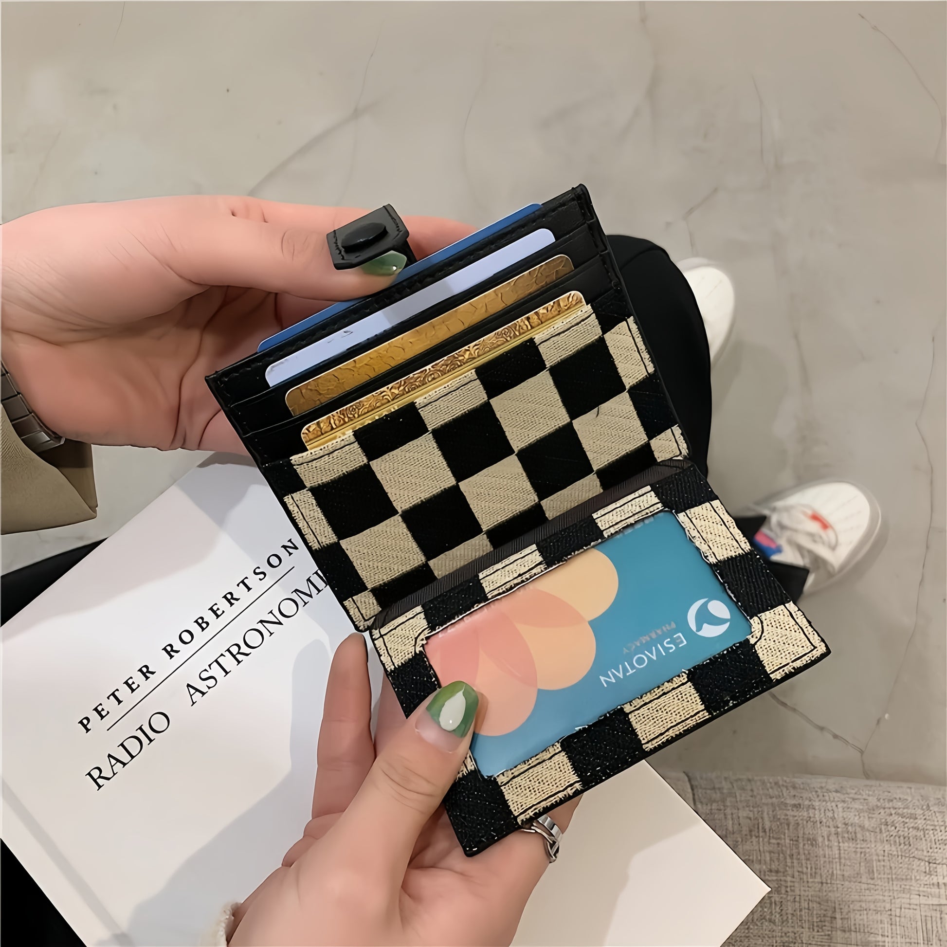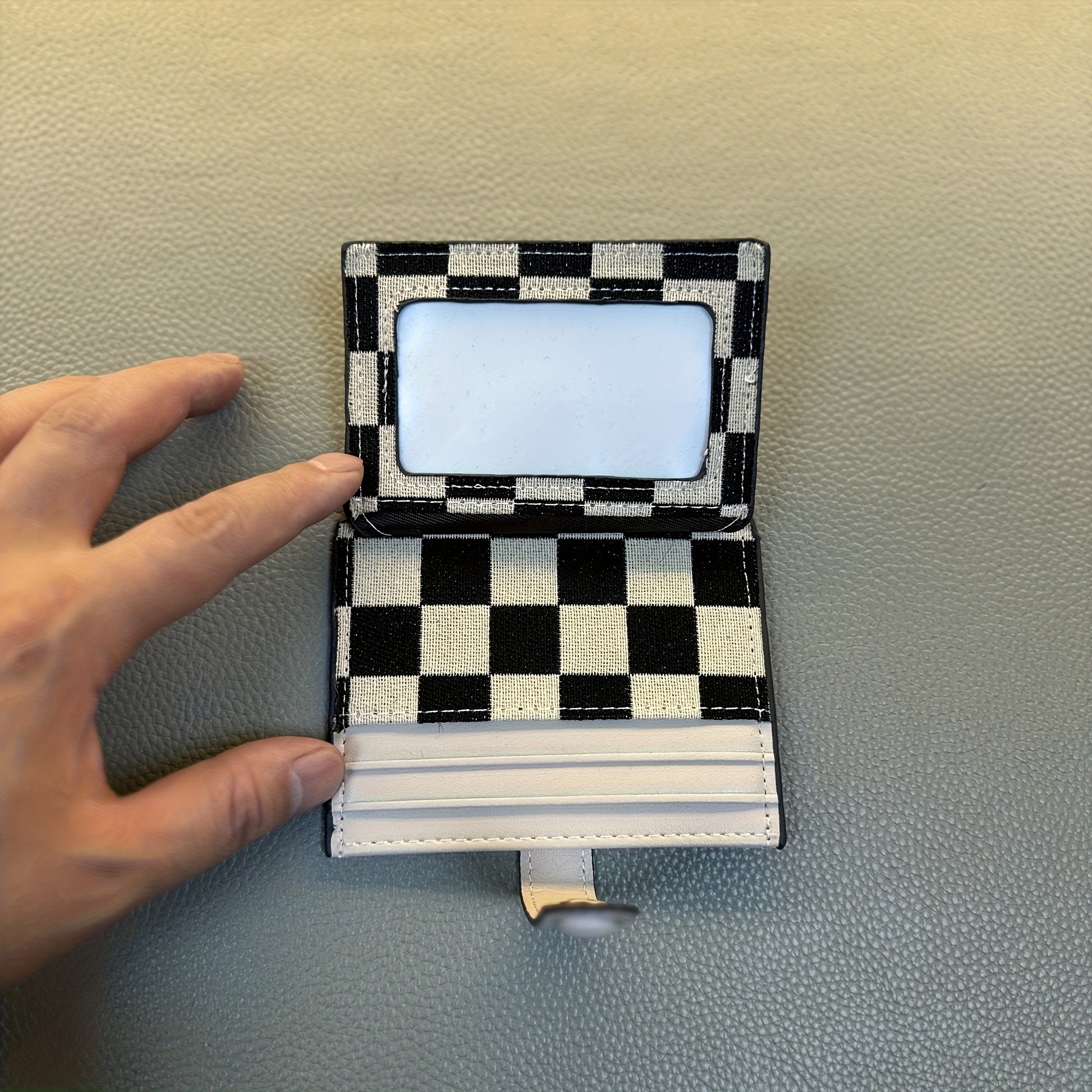 1pc Slim Black & White Checkered Card Wallet with Transparent Window, Large Capacity Coin Purse & Multiple Slots - Stylish Retro Design, Perfect Gift for Her or Mom, Wallet