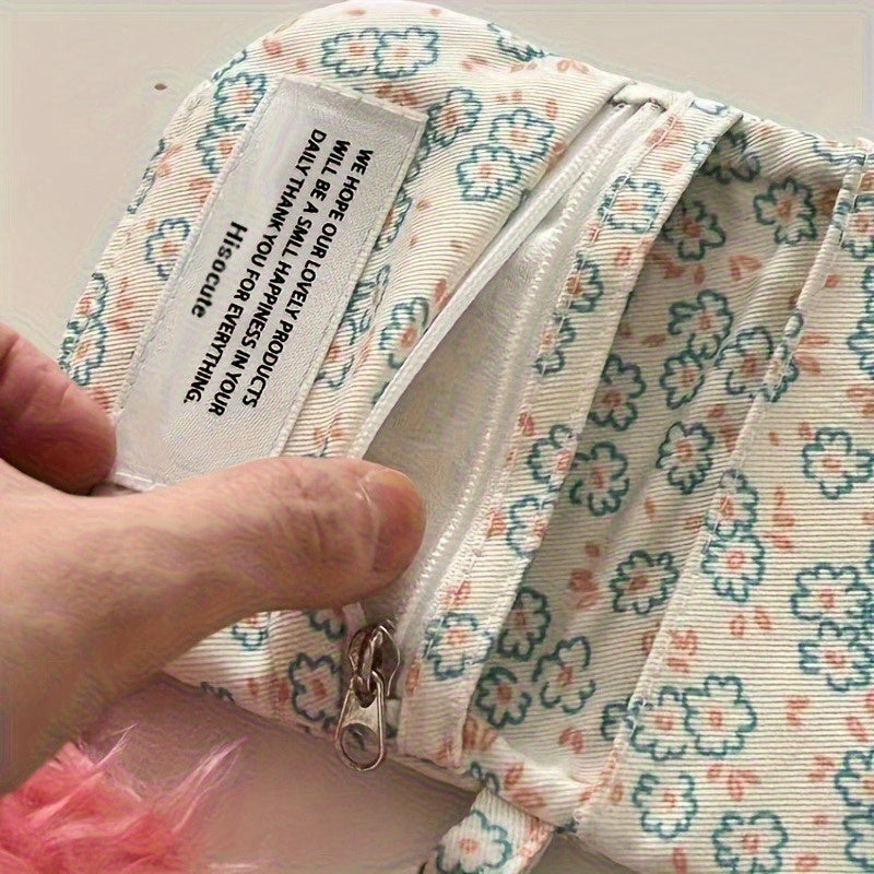 2 mini flower card holders&coin purse - pink, blue-green, small flower white background design, secure zipper closure, portable keychain style Women's small wallet, compact and durable card coin storage bag