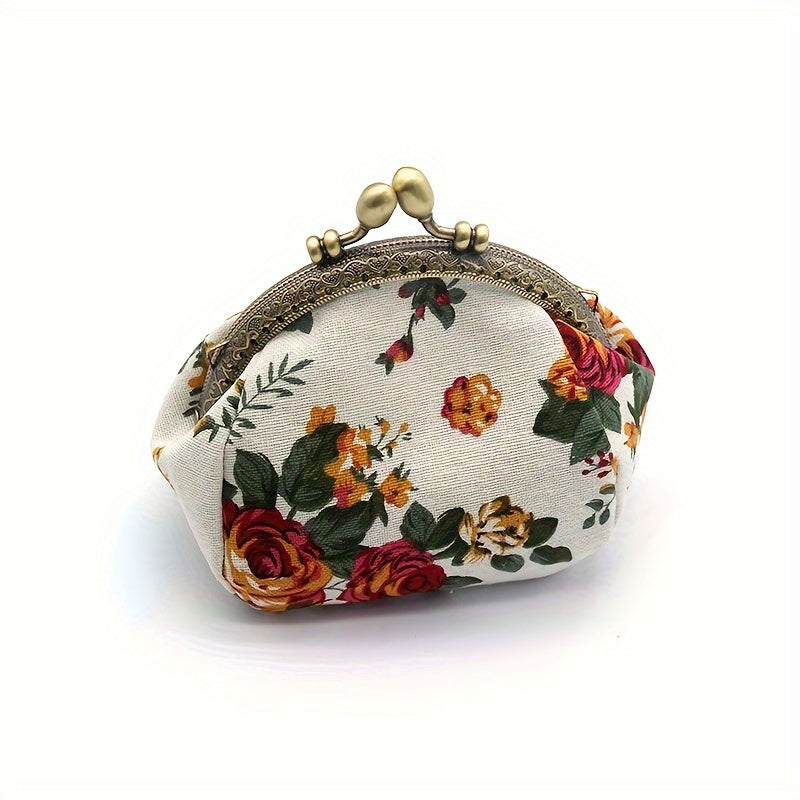 CCIDEA Vintage Floral Coin Purse, Mini Kiss-Lock Clutch Wallet with Polyester Lining, Hand Washable, Buckle Closure, Lightweight Carry on Pouch for Women