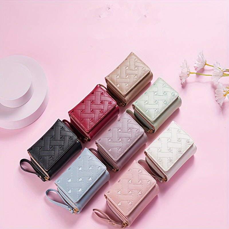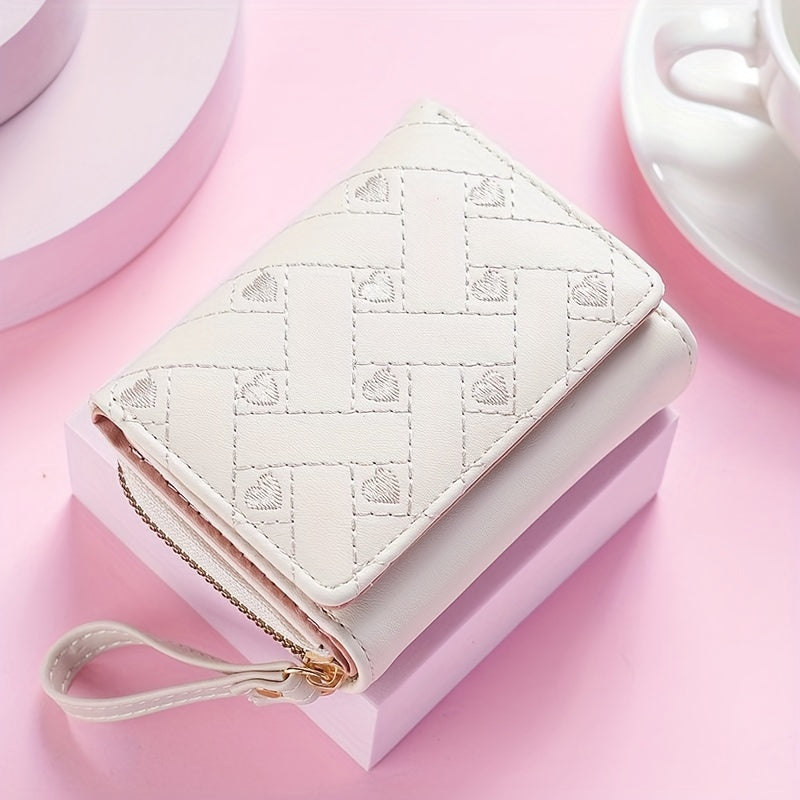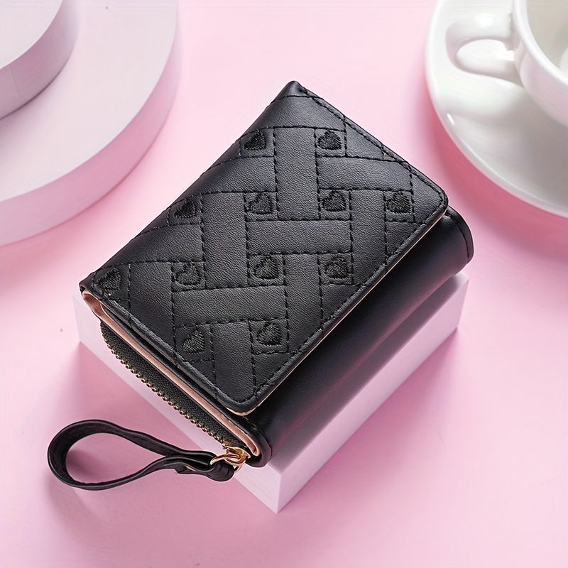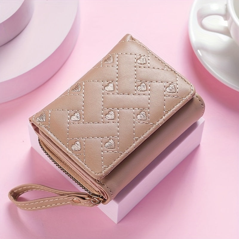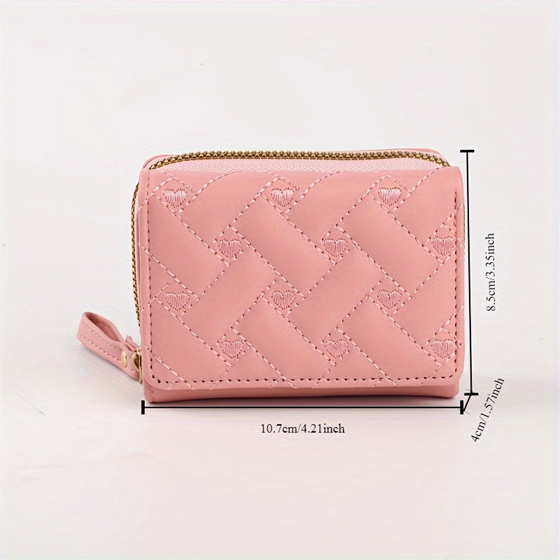 Faux Leather Heart Pattern Tassel Zipper Wallet for Women, Foldable 3-Panel Coin Purse with Polyester Lining, Non-Washable, Insert Pocket - Perfect for Valentine's, Birthday, Halloween, Christmas, Mother's Day Gifts