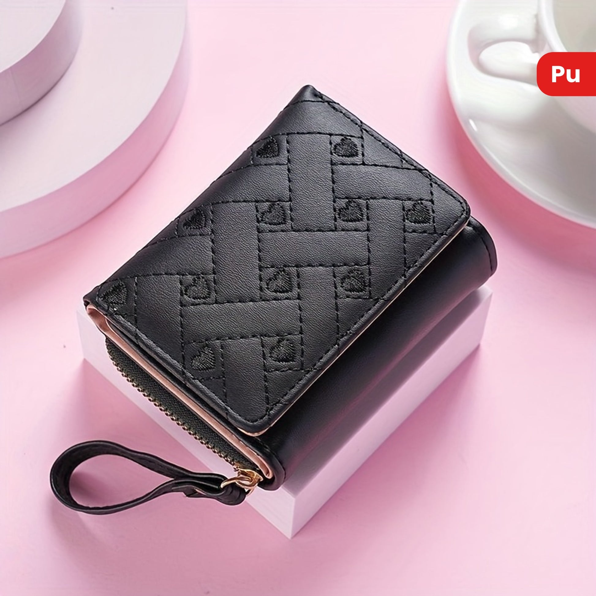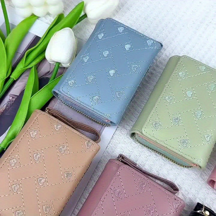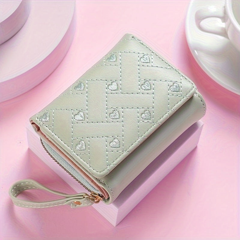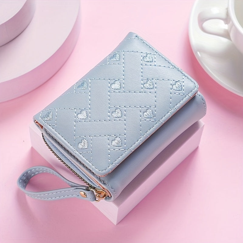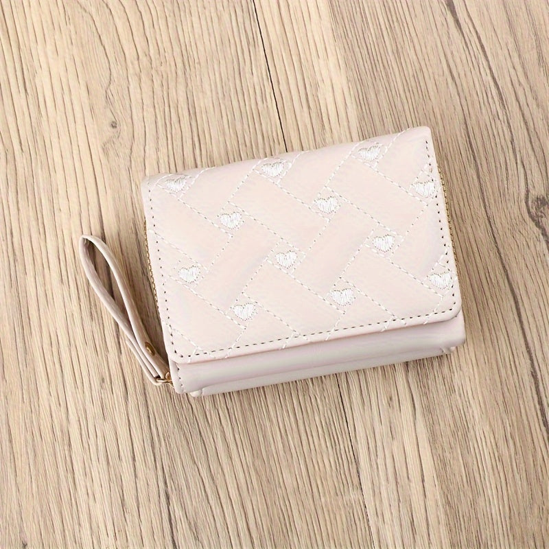 Faux Leather Heart Pattern Tassel Zipper Wallet for Women, Foldable 3-Panel Coin Purse with Polyester Lining, Non-Washable, Insert Pocket - Perfect for Valentine's, Birthday, Halloween, Christmas, Mother's Day Gifts