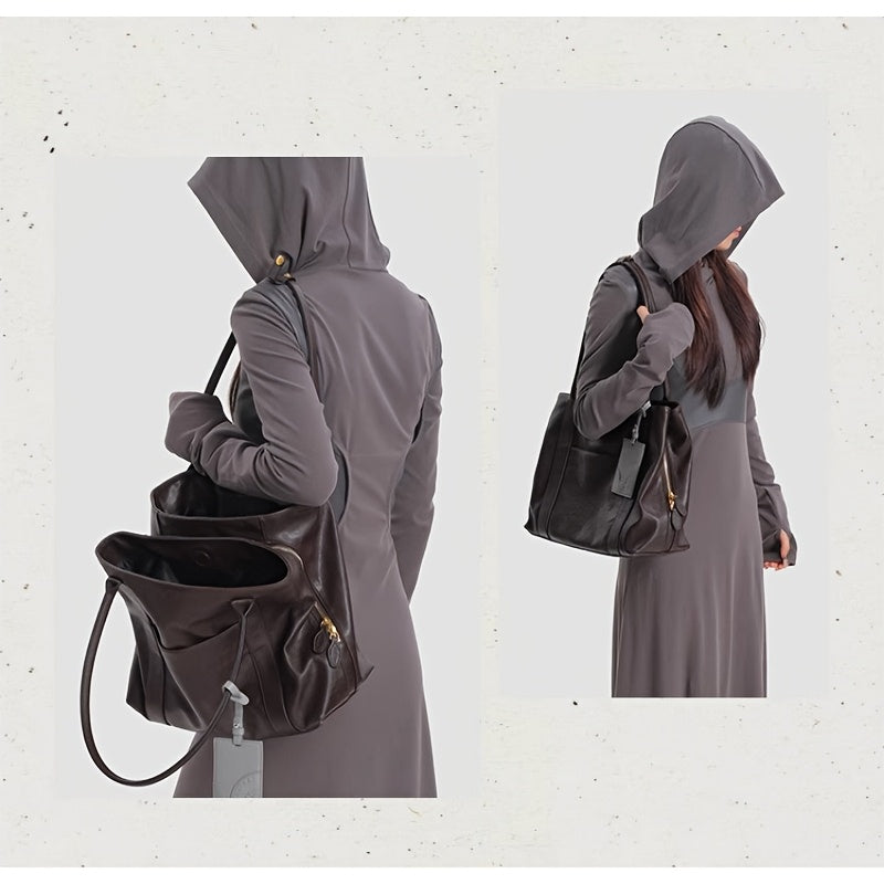 KoniKoni Red Leather Tote Bag - Large Capacity, Durable Edge Paint, Zipper Closure