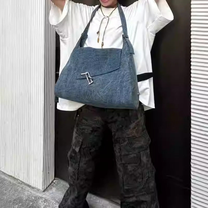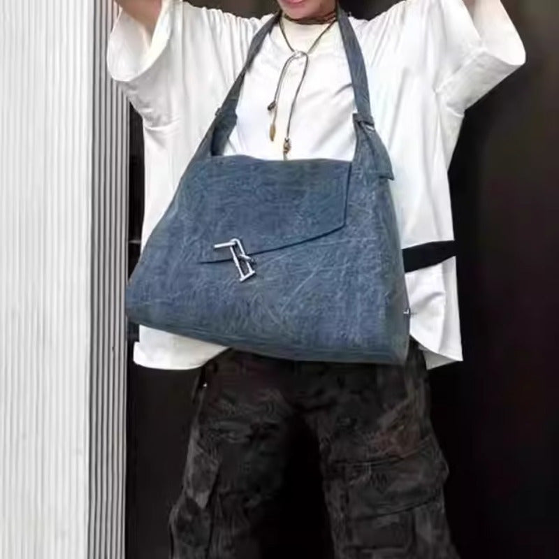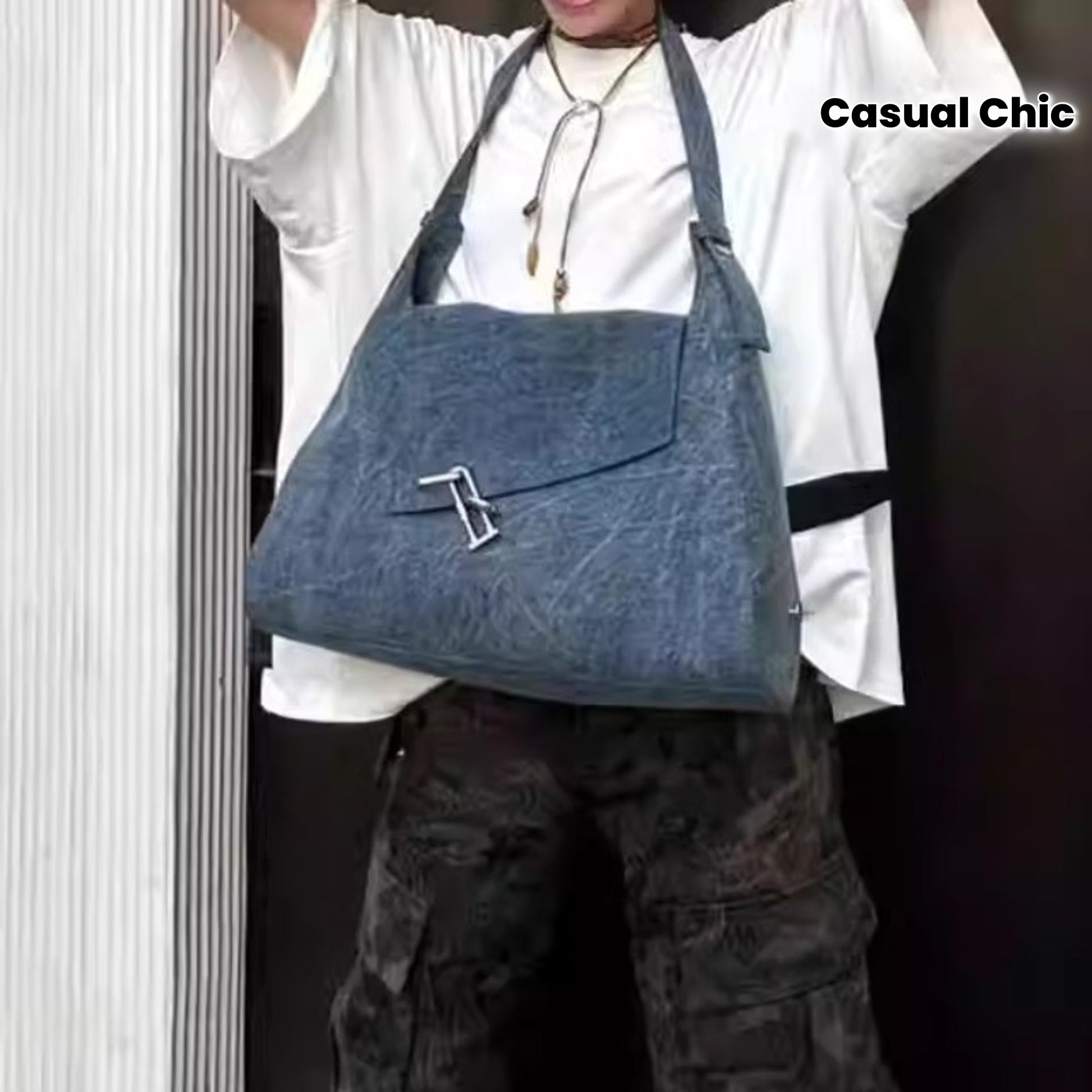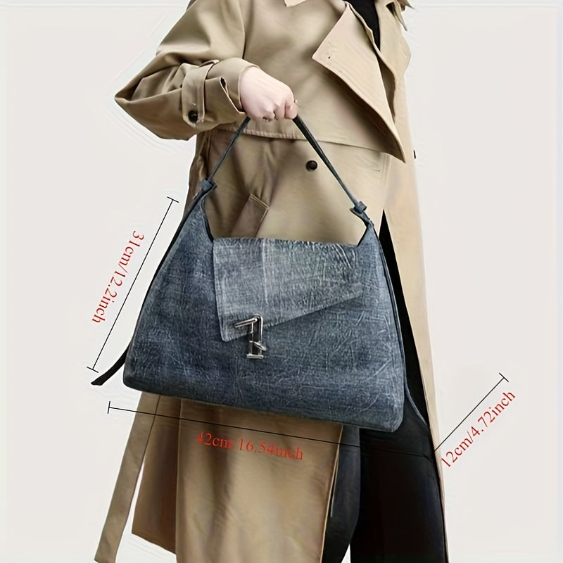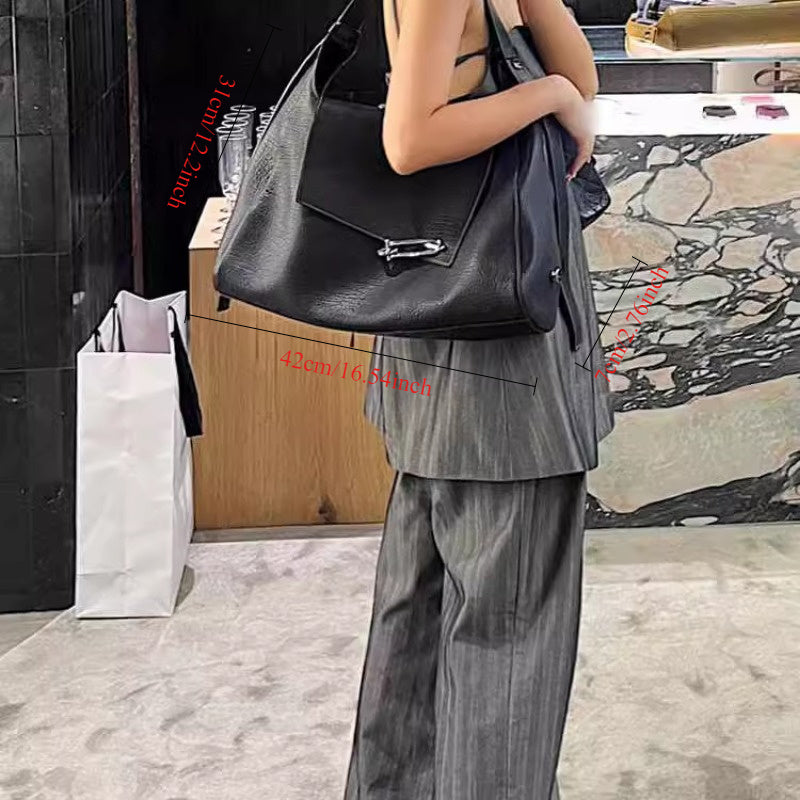 Trendy Large Capacity Women's Tote Bag with Lock Closure – Stylish Shoulder & Handbag in Khaki, Blue, or Black – Two-Layer, Casual Chic Design for Everyday Use