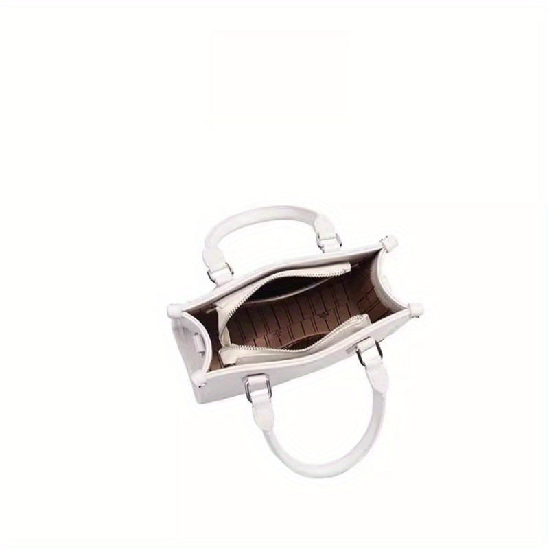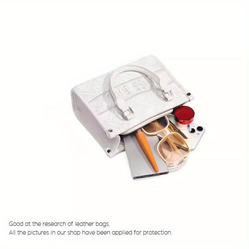 Vintage Embroidered Tote Bag with Adjustable Shoulder Strap & Wrist Strap - Creamy White Second-Layer Leather