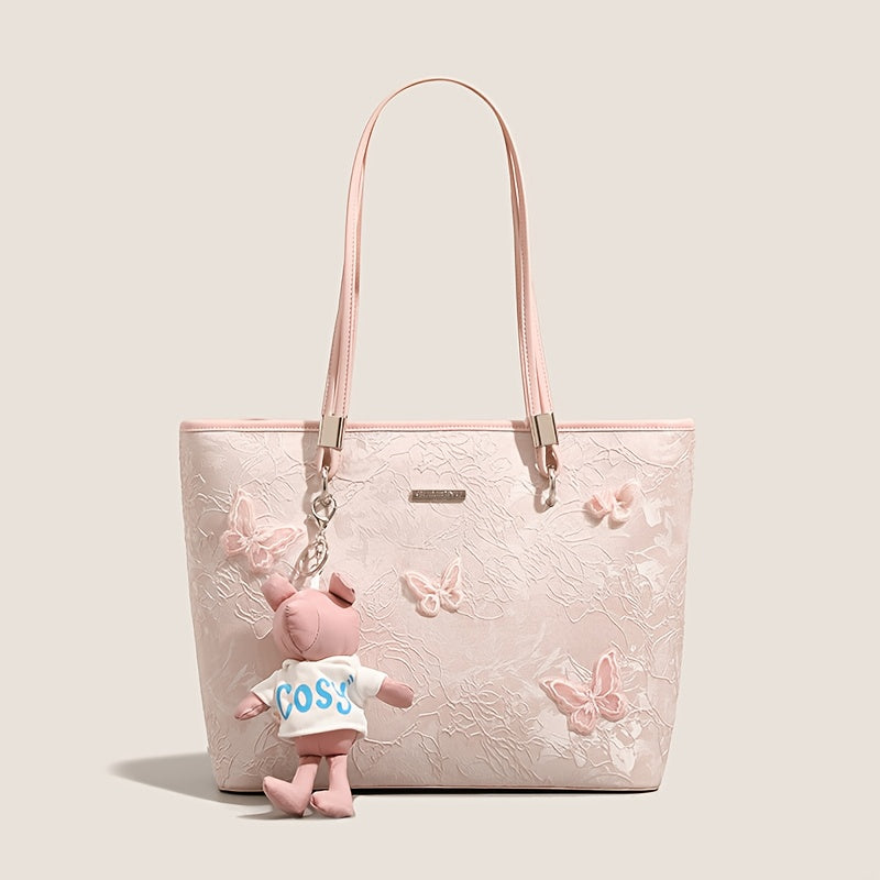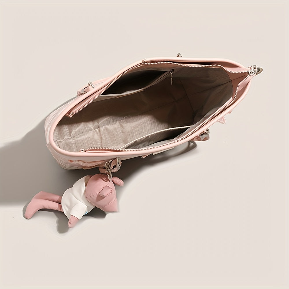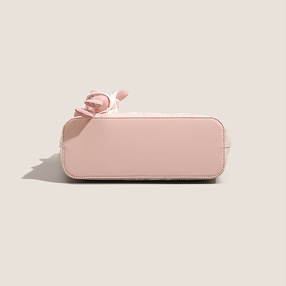 Women'S Large Capacity Tote Bag - Elegant Pink Synthetic Handbag with Zipper Closure, Spacious Work Bag for Women, Everyday & Formal Events - Durable & Easy-Clean Designer-like Purse